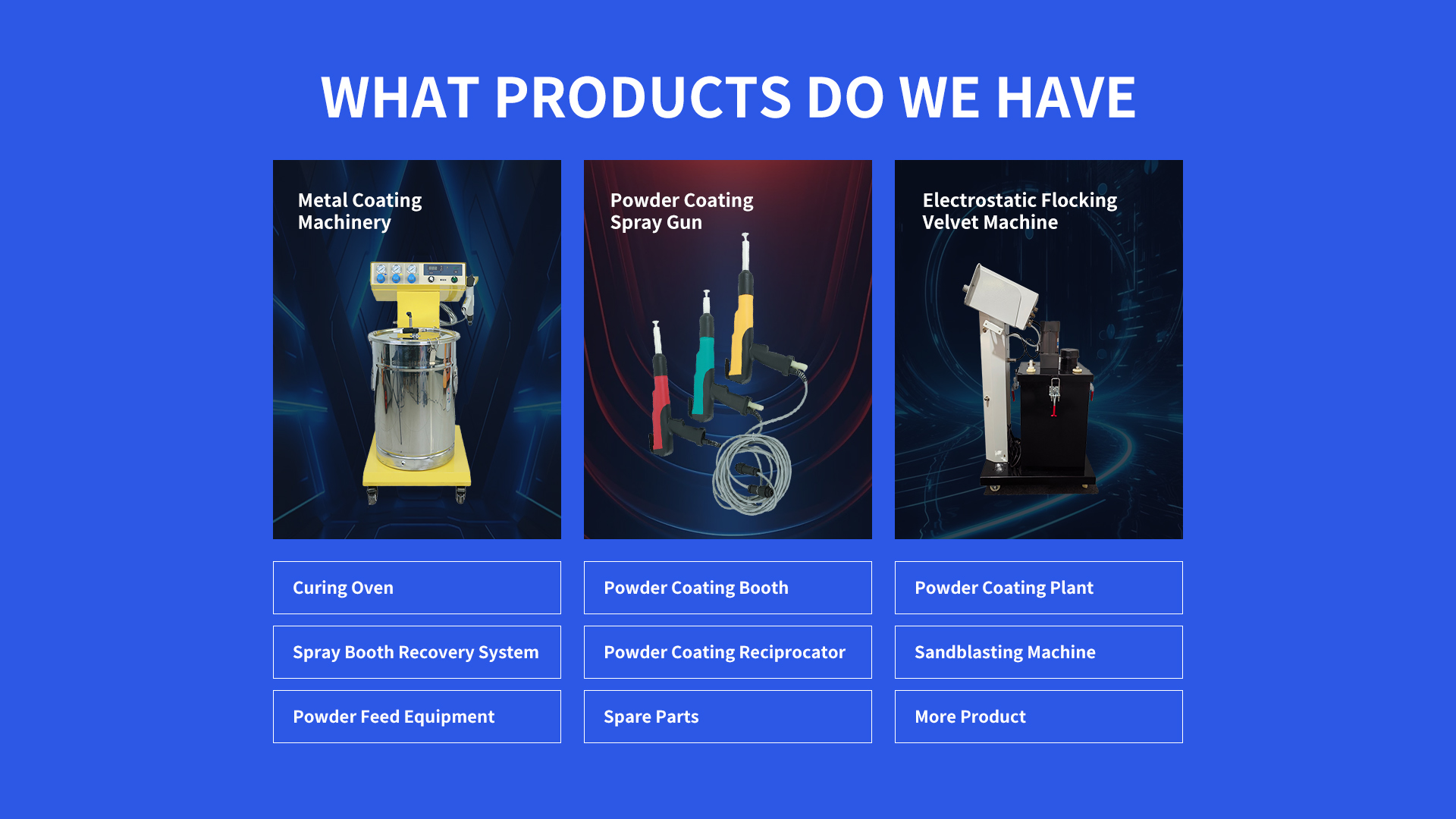 Powder Coat Gun Factory equipment enables electrostatic application of dry powder to metal surfaces. Projects typically involve pretreatment, spraying, and curing stages.